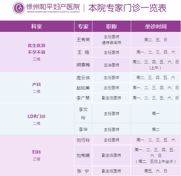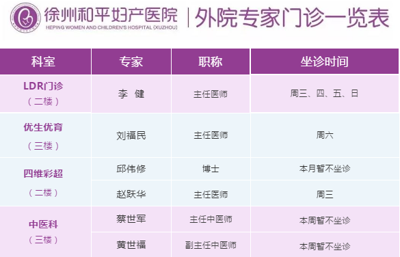 徐州和平妇产医院2020年4月13日—4月19日专家坐诊时间表,有需要的亲,赶紧预约哦~~