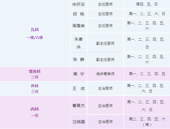 坐诊时间:周一、二、三、四、六(周一、六晚班)