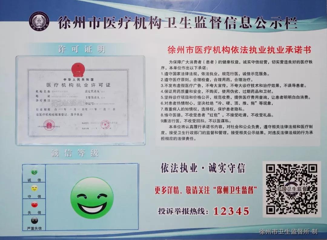 ▲获得徐州市卫生监督所授予的“徐州市诚信医院”殊荣