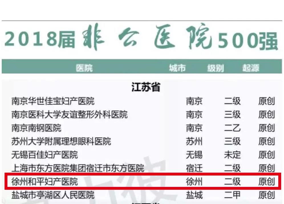 上榜了!徐州和平妇产医院跻身2018年非公立医院
