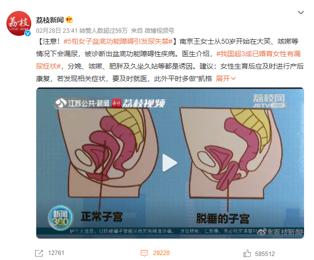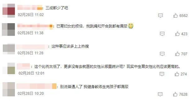 “笑尿了”对很多人来说只是形容搞笑程度的玩笑话,然而在我国,有超3成的已婚育女性却“笑不出来”。近日,这个话题在微博引起热议,关于女性产后失禁的探讨再度被推上热搜。医生介绍,我国30%-40%的已婚已育女性有不同程度的尿失禁症状,相当于每3个成年女性就有1个尿失禁。很多网友表示,真实的患者比例应该比这个数据更多,因为还有更多女性在“隐秘角落”忍受着失禁的折磨。“失禁”不仅是身体的疾病,也关乎女性的 ...