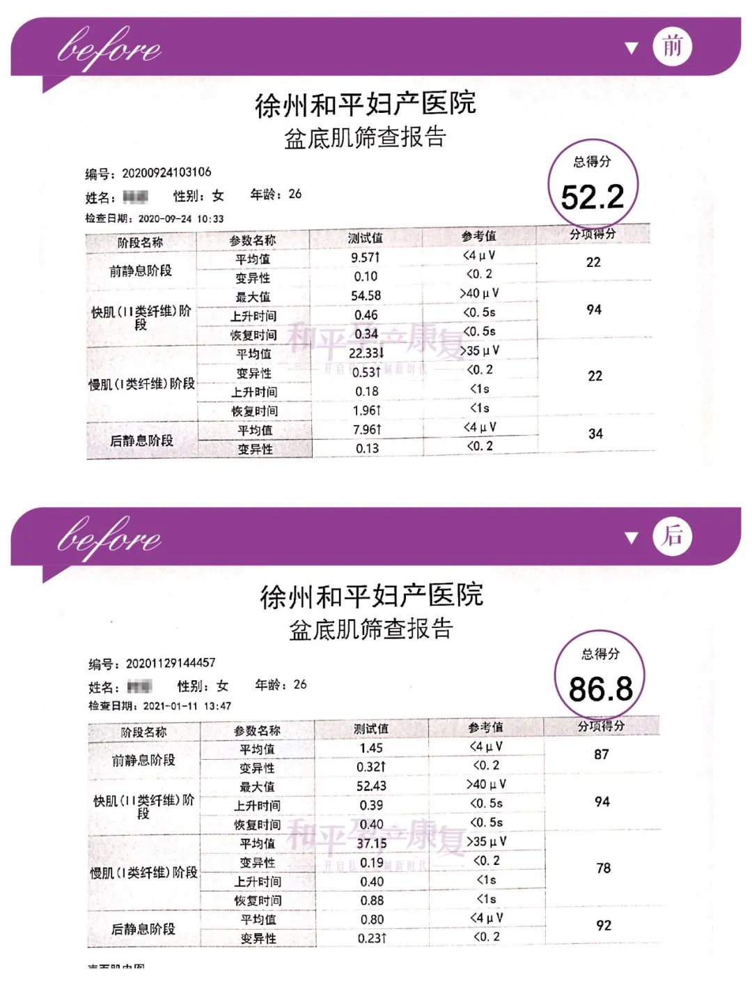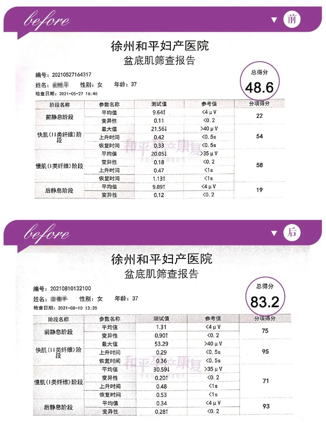 许多女性在经过一段时间的盆底肌治疗后,评估分数都由一开始的四五十分增长到了八十多分。