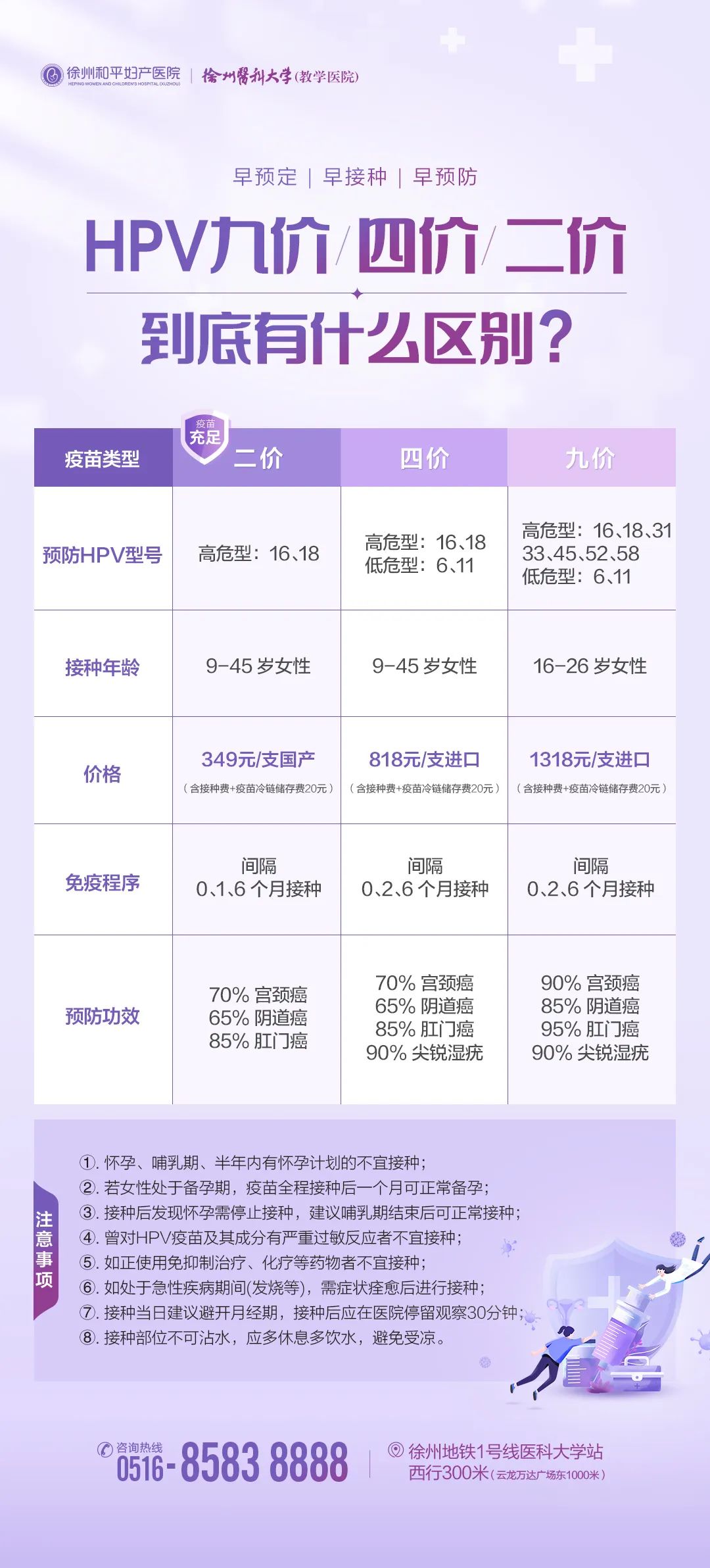 6月10日,小编在【徐州和平妇产医院V】中发布的《终于来了,和平九价HPV疫苗现货限量抢↘》文章引发强烈反响,后台咨询热线一度陷入瘫痪,对此,小编汇总了一些大家比较关心的疫苗问题,给大家详细讲解~首先,给大家讲下HPV疫苗与宫颈癌之间的关系HPV与宫颈癌HPV 疫苗,学名人乳头瘤病毒疫苗,能够有效预防宫颈癌。宫颈癌是女性最常见的恶性肿瘤之一,是 15~44 岁女性中第二大高发癌症。我国每年新发患者 ...
