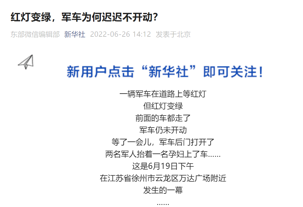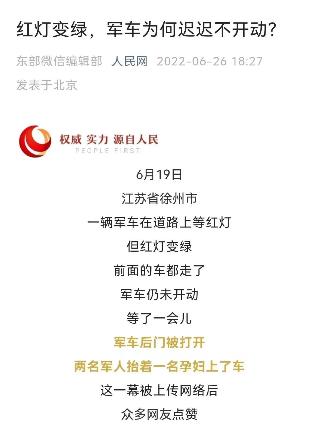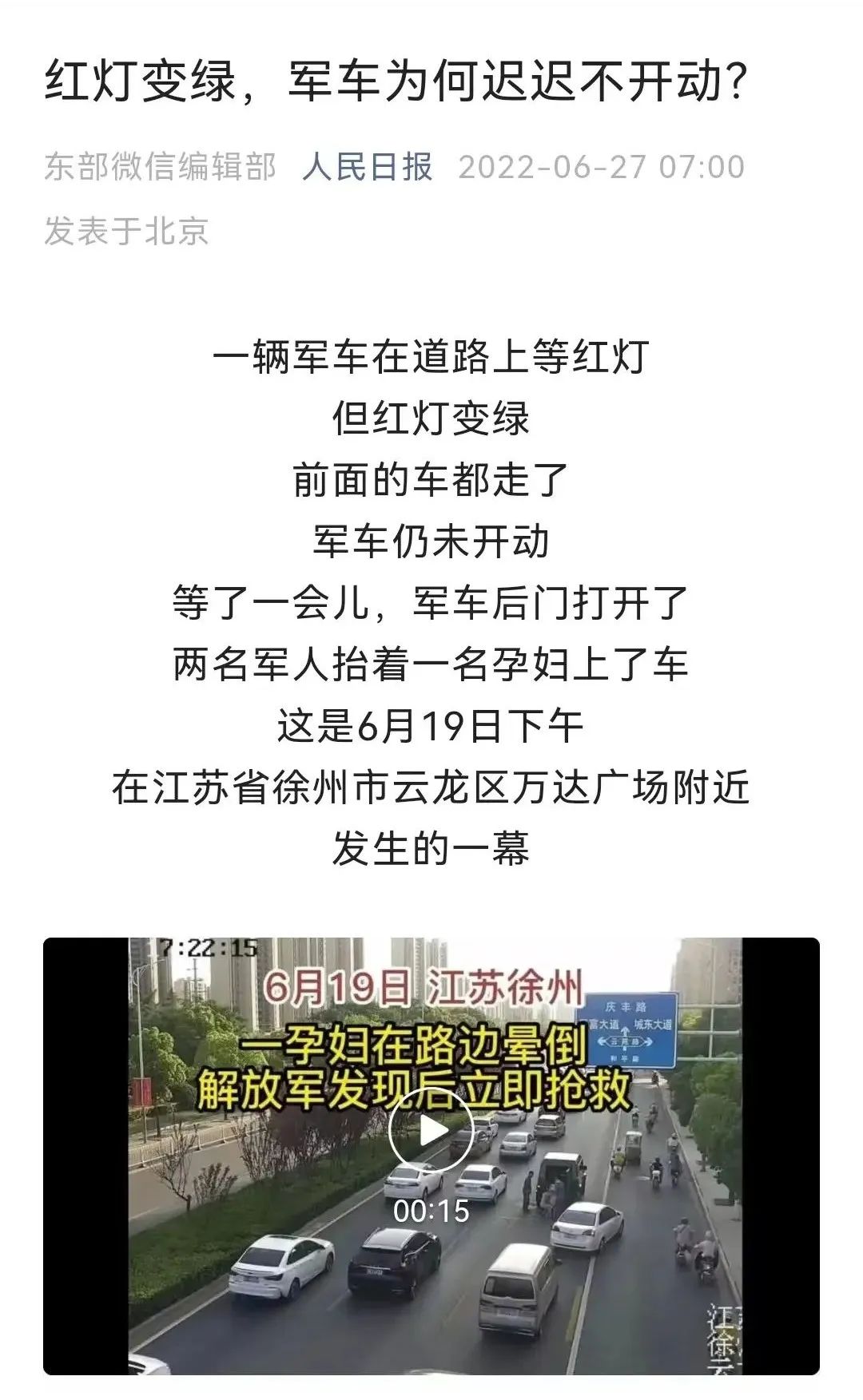 一辆军车在道路上等红灯但红灯变绿前面的车都走了军车仍未开动等了一会儿,军车后门打开了两名军人抬着一名孕妇上了车……这是6月19日下午在云龙万达广场附近发生的一幕这一幕被网友上传网络后引发如潮点赞请看——视频:救援现场这一幕被网友上传网络后引发如潮点赞人民网、人民日报、新华社微信公众号纷纷点赞发布医院门前监控画面。院内监控画面。孕妇被送入医院后输液室刘培培第一时间上前迎接并为她进行身体检查发现她是因 ...