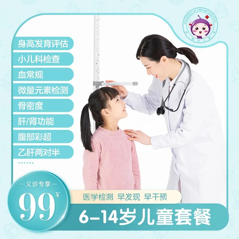 针对6-14岁儿童的生长发育情况,和平儿科也推出『6-14岁儿童健康检查』,让家长清楚了解孩子生长发育情况,给予最合适的治疗方案,点击下图即刻抢购
