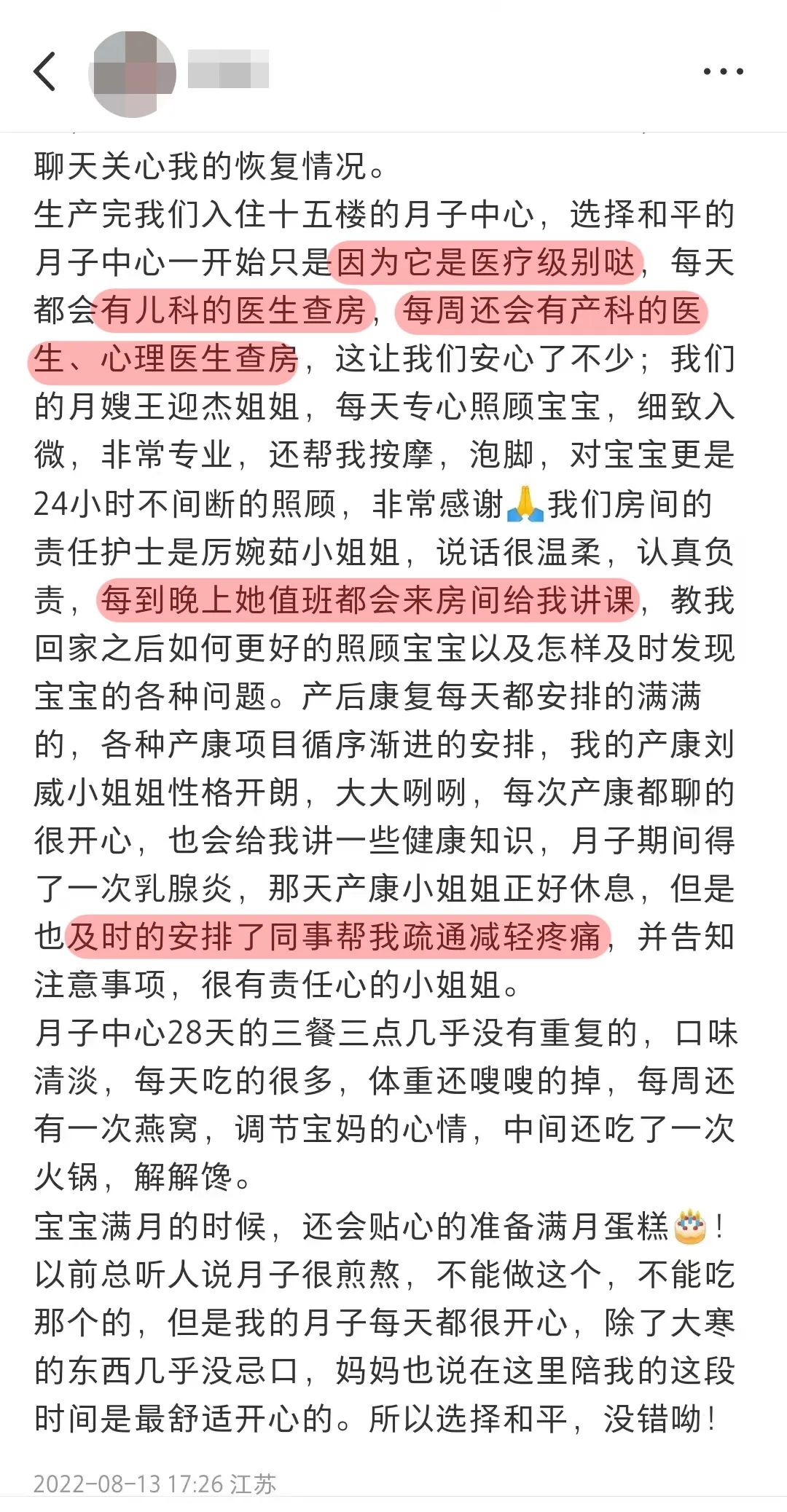 一提到坐月子,不管准妈妈还是新妈妈都要一齐头大。想象中卸完货就能“岁月静好”的日子并不会如期到来,取而代之的是手忙脚乱、一地鸡毛、夜不能寐……如果家中还有个循矩守旧的老人,那更是没得一点“月子自由”。那是不是坐月子都要经历这样一番“磨难”?NO!看完下面这些妈妈的分享,不得不说一句:这才是理想中岁月静好的月子生活啊!月子里遇到宝宝的健康问题怎么办?别急!医生团队每天都会来查房不管是宝妈还是宝宝都能 ...