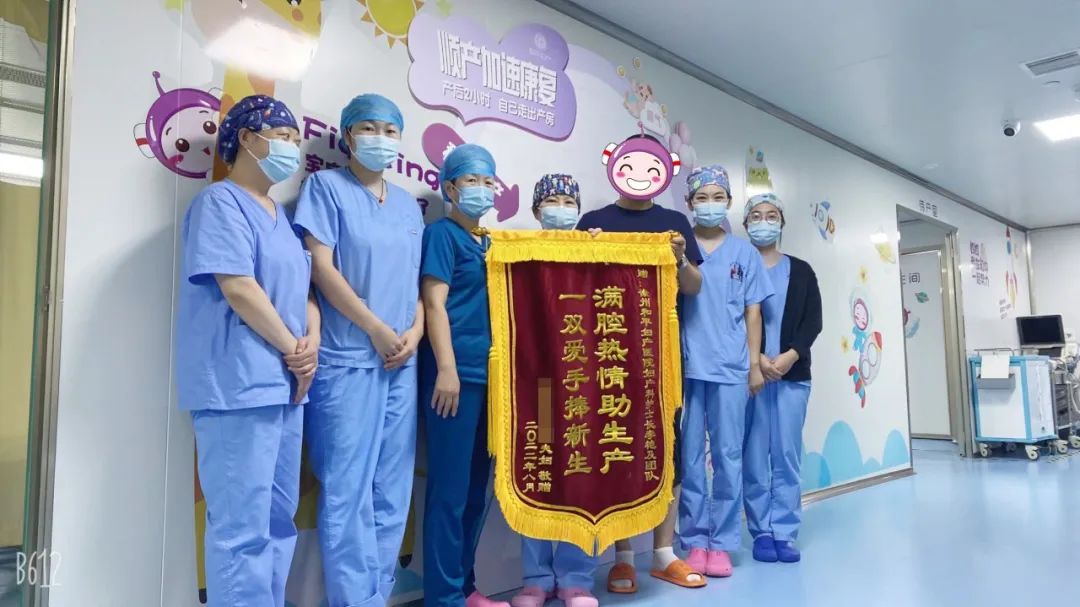 送锦旗前,菁菁和爱人反复斟酌推敲,亲自撰写文案“满腔热情助生产,一双爱手捧新生”,送给这个可敬可爱的团队。这两句话,既是孕产家庭对产房团队的称赞,也是我们始终坚持的职业初心。