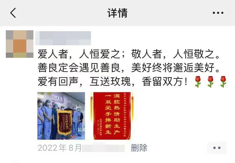 其实,对于在和平生孩子、坐月子的感受,还有一个人特别有发言权,那就是菁菁的爱人。送完锦旗的当天,他就特地发了一条朋友圈,纪念这段美好的缘分。
