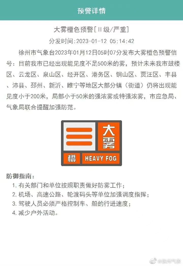 今早出门不少徐州人感叹仿佛进入仙境多个高速出入口也临时关闭徐州气象也在今早发布了大雾橙色预警提醒大家务必注意交通安全一改前几天的“春意盎然”未来几天一波强冷空气正蓄势待发即日起至周末(1月12日至15日)受新一股强冷空气影响我国大部地区将迎来明显雨雪和大风降温雨雪范围将覆盖超27省份中央气象台已经发布2023首个寒潮预警我国大部将降温8-12℃中央气象台1月10日18时发布寒潮蓝色预警:受强冷空气 ...